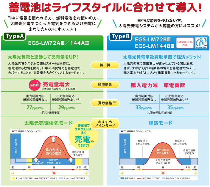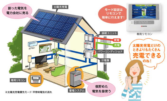 深夜の電気代が安い時間帯で電力を蓄え、電気代が高めな昼間に利用する方や、太陽光発電システムで発電し