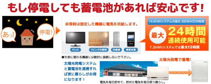 た電力を蓄電池に貯め、その貯めた電気を夜間に利用するなど、災害時などの非常電源としての役割だけでは