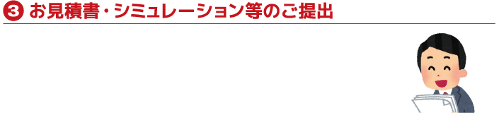 現地調査が終わりましたら、商品のご説明と合わせ正式なお見積書やシミュレーショ