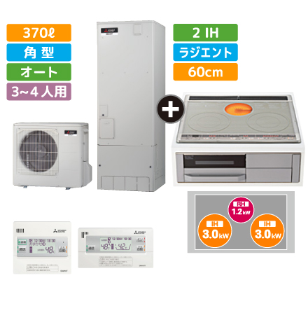 ③オートタイプ370ℓエコキュート+ビルトインIHクッキングヒーターセット