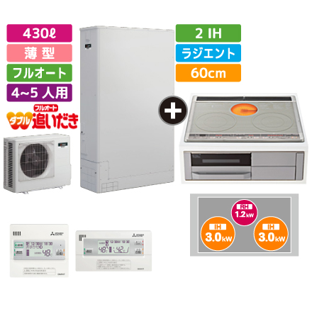 ⑦薄型タイプ430ℓエコキュート+ビルトインIHセット