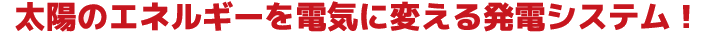 太陽電池モジュールを使って太陽の光から電気エネルギーを創り、パワーコンディショナによって直流電力から交流電力へと変換し、照明やエアコンなど家庭内のさまざまな電気製品の電力として使用します。