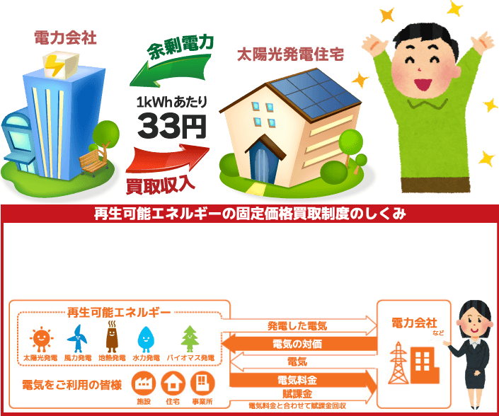 電力会社等が買取りに要した費用は、再生可能エネルギー発電促進賦課金(電気料金の一部)として、電力